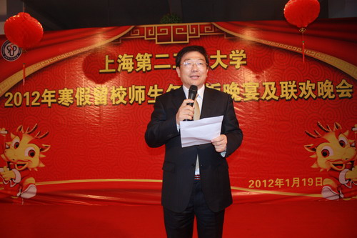 教委副主任李瑞阳首先致辞。他充分肯定了二工大51年的发展历程和在2011年学校所取得的成绩,他希望二工大抓住机 遇,进一步完善、推进职业教育立交桥建设,探索高层次应用型人才培养模式;以2012年搬迁浦东10周年为契机,进一步做好“与企业同行,和浦东同辉”工 作,为浦东二次创业、为上海经济转型培养更多创新应用型人才。并代表上海市教委向留校师生,致以新春的祝福,祝愿大家学业有成、幸福安康!