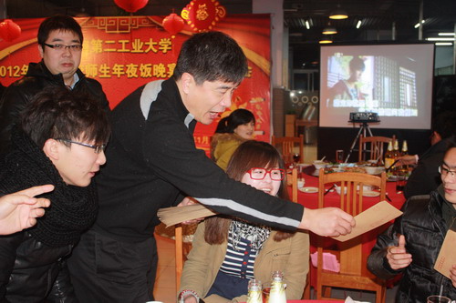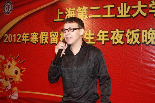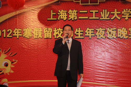 1月19 日晚,我校东三食堂张灯结彩,欢歌笑语,春节留校外地学生、留学生、校领导和老师欢聚一堂,隆重举行“上海第二工业大学2012年迎新春年夜饭”活动,共 同迎接龙年春节的到来。市教委副主任李瑞阳莅临我校,与师生一起迎接传统佳节的到来。校党委书记阮显忠、校长胡寿根,党委副书记李世平、校办主任俞雷霖、 学生处处长经晓峰、副处长凎爱品、团委书记施静和各学院总支副书记、辅导员等与近200名留校学生,共享年夜饭喜迎新春佳节。活动由学生工作部部长经晓峰 主持。