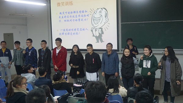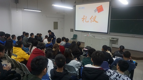 最后,由学生处原副处长许燕平教授给学生们进行了勤工助学岗前礼仪培训。培训会现场气氛热烈,同学们积极参与培训互动。