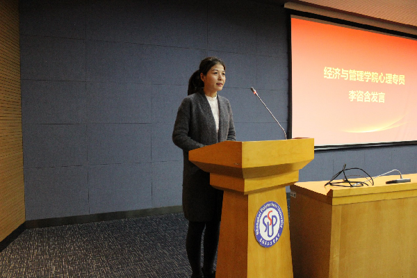 接着,经济与管理学院朋辈分站的指导老师李咨含以一个抑郁症女孩的案例引出我们朋辈在学生中应发挥的作用,即提供心理支持、形成互助的力量、展现成长的状态,从而给同学也是给自己提供一个良好的成长环境,鼓励大家在这个大家庭中成长并收获快乐。