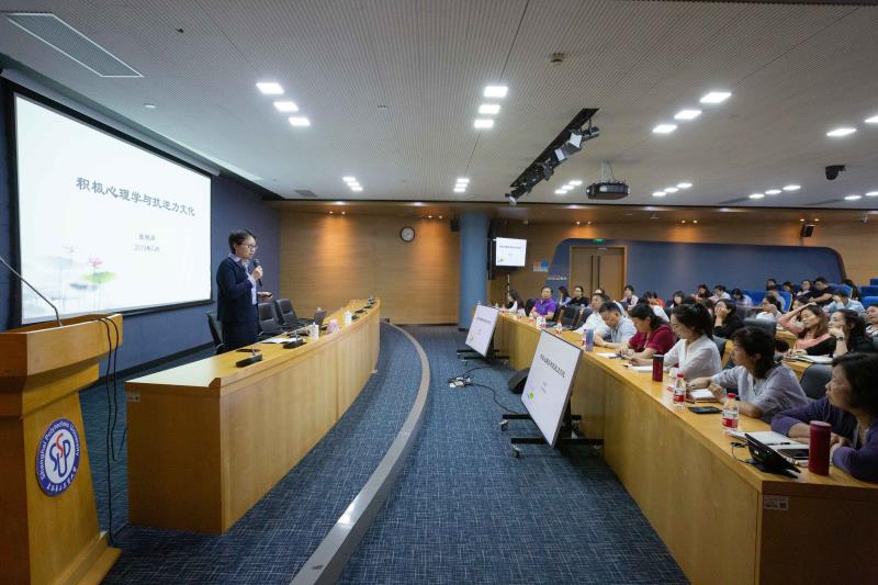 5月30日下午,上海中医药大学党委副书记、纪委书记张艳萍应邀作了题为《积极心理与抗逆力文化》的专题报告。校党委书记吴松,各二级教学单位党组织书记、分管学生工作总支副书记,学工部、研工部、校团委等部门相关人员,全体辅导员参加报告会。