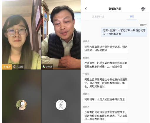 徐余法在听取19计科C1、C2班“云班会”后,对同学们提出了希望。希望大家一是加强“三个交流”,即与专业老师和学业导师交流,与优秀学长学姐、毕业校友交流,与社会、企业交流;二是参与若干个学科项目或竞赛,在项目竞赛中深度系统学习专业知识;三是希望同学们树立远大志向,将来发挥专业特长,学有所获。