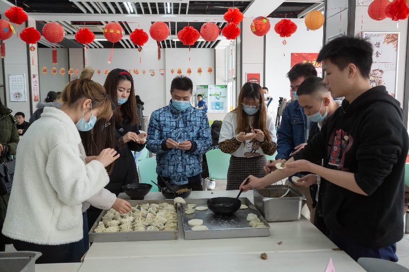 活动中,校领导与留校师生一起包饺子、写春联、猜灯谜、剪窗花,其乐融融,暖意融融。来自新疆的达尼亚尔同学说,虽然不能与家人团聚,但在二工大的校园里,我一样能感受到家的温暖。