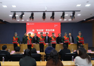 会上,资源与环境工程学院周忠洋代表“双合格”预征学生发言,他表示将以饱满热情投入役前教育。退役大学生士兵代表、数理与统计学院邵鸿飞鼓励预征青年尽快转变心态,在军营淬炼成钢。辅导员代表、智能制造与控制工程学院龚旖德老师号召大家在部队尽快成长为“有理想、敢担当、能吃苦、肯奋斗”的新时代青年。会上,2026年退役大学生士兵为即将参加役前教育的“双合格”预征学生代表佩戴绶带,象征着军旅荣誉的传承和强军使命的赓续,激励预征青年不忘初心,续写工大学子的报国荣光。